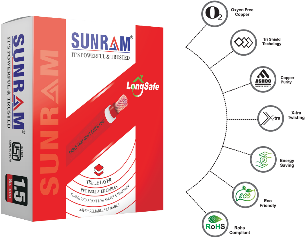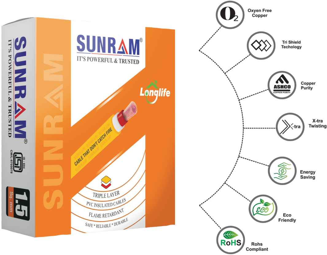 Flame Retardant FR PVC Insulated Industrial Cables SUNRAM Single Core FR PVC Insulated Industrial Grade Copper Conductor (Unsheathed) Flexible Cables, 1100 Volt Conforming to IS 694.